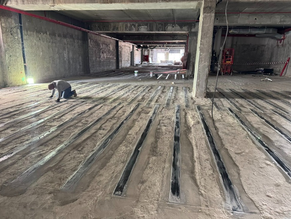 יישום גמיש באתר הבנייה, שבו משרים את היריעות באפוקסי בזמן אמת.